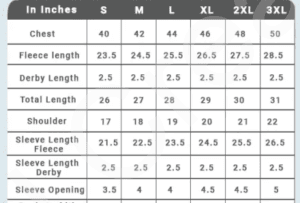 Sweatshirt Size Chart