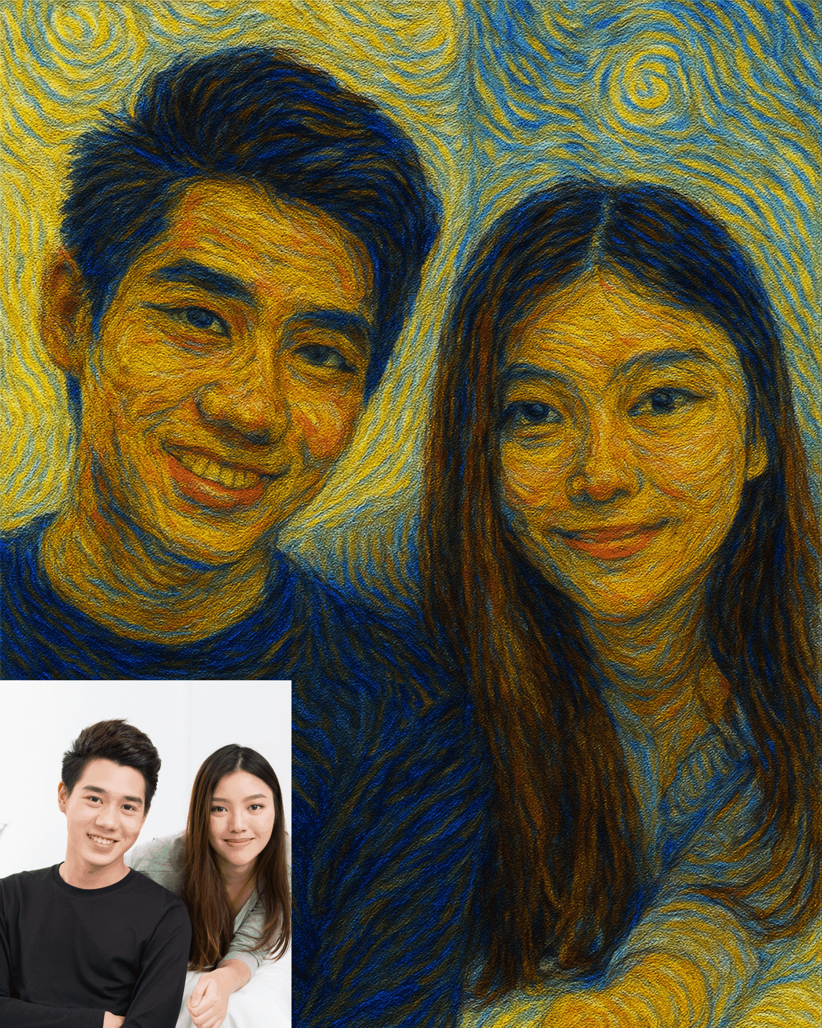 Turn your memories into art! Send us your photo, and we’ll transform it into a stunning Van Gogh–style painting, frame it, and deliver it to your doorstep. Choose your favorite quote and frame size, place your order, and share your photo via WhatsApp (9940626045 ) or email (info@nnncreations.in )— we’ll handle the magic.